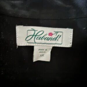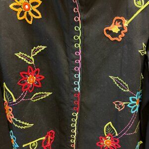 stylish Haband Women's jacket size XX. Black with colorful stitched appliques. Button down front. 100% cotton - machine washable.