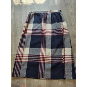 Haberdashery Plaid Wool Blend Pencil Skirt Tartan Check Faux Wrap Fringe Vintage