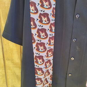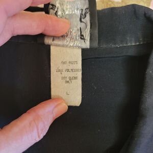 I say Good Used Condition because it is a great shirt. There is a stain when looking at shirt on the right side (which is barely noticeable but mentioned). Then on Front towards bottom is some type of stain (not sure if it could be gotten out with dry cleaning). This shirt has a paper tag in it and an awesome Casino Old Mobster Print.