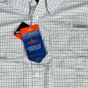 Habit Fishing Lake Hike Shirt Men's M/M White Grid Check Long Sleeve NWT