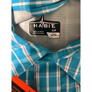 Habit Men's Crayfish Creek S/S River Shirt Vivid Blue Plaid, UPF 40+, Small