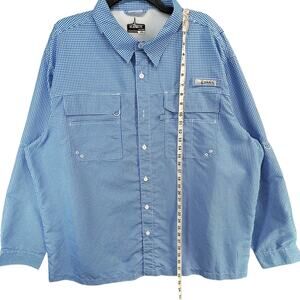 Habit River Guide Fishing Shirt Mens Size 2XL Blue Check Vented UV Lakeside Outdoor