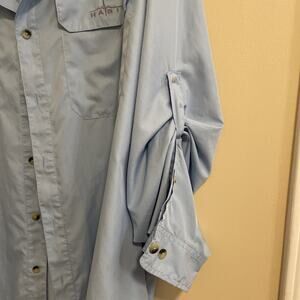 Habit Shirt L Fishing Hunting Long Sleeve Button Vented UPF 30 Blue Sz 2XL