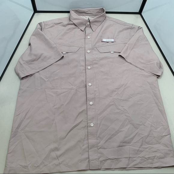 Habit Vented Fishing Shirt Short Sleeve Button Men's Size Large 40+ Solar Factor Beige