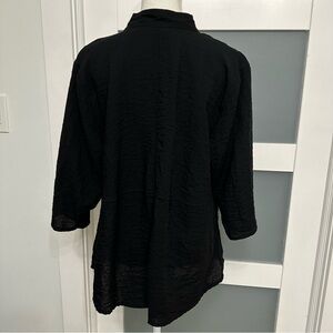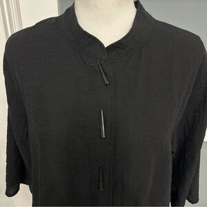 Habitat Black Crinkle Rayon Blend Top SZ Large Artsy Buttons Lagenlook EUC