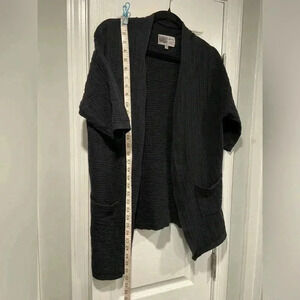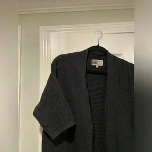 Habitat Black Waffle Linen Blend Short Sleeve Open Cardigan Pockets Size XS