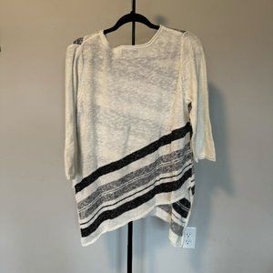 Habitat Black & White Asymmetrical Cotton Linen Sweater - Size Small