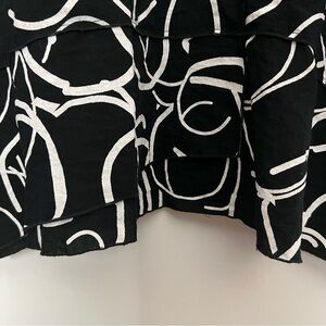 Habitat Black White Modern Circular Print Uneven Tiered Hemline Popover Blouse