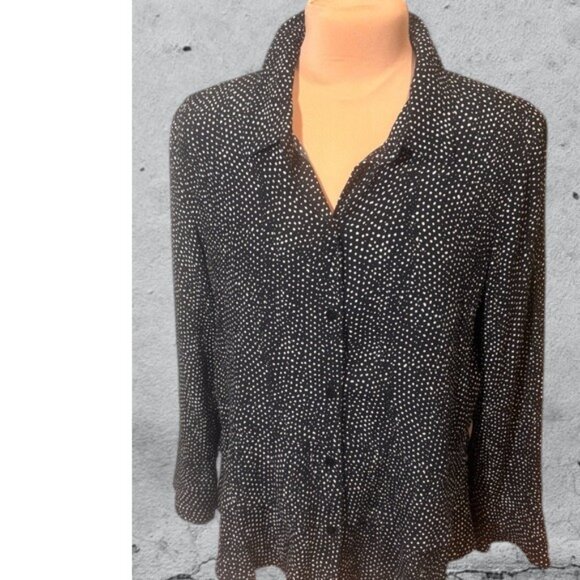 Habitat Black and White Button Down Shirt 3/4 Sleeve Relaxed Fit Size Small
