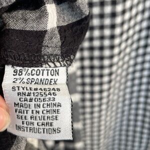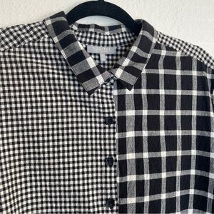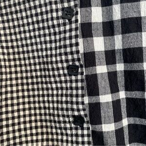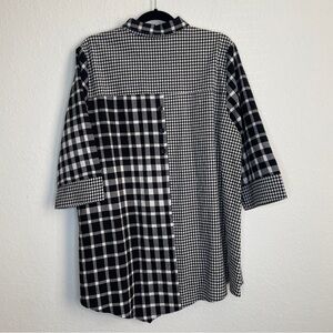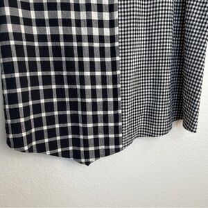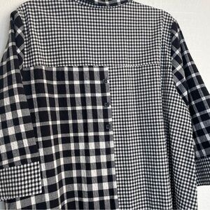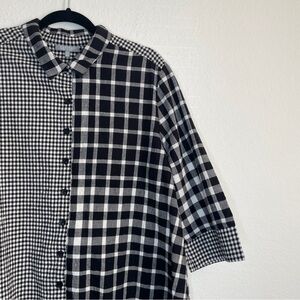 Habitat Black and White Checkered Button Tunic 3/4 Sleeve Asymmetric Hem Gingham