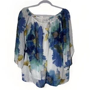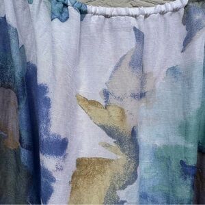 Habitat Blouse Artsy Lagenlook Size L Floral Coastal Grandma Linen Blend Flowy