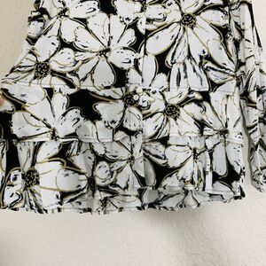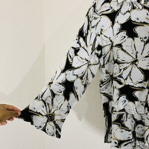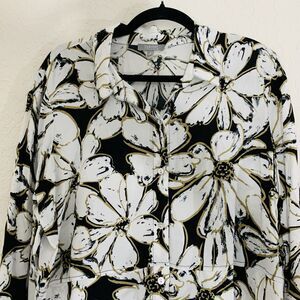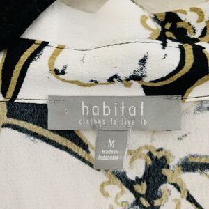 Habitat Blouse Women M White Black Floral Button Up Artsy Feminine Career Office