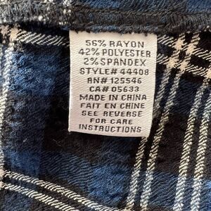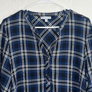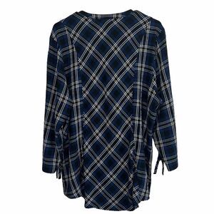 Habitat Blue Plaid A Line Long Button Front 3/4 Sleeve Top Lagenlook Large A24