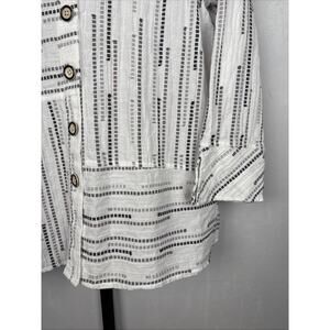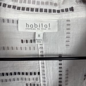Habitat Button Down Shirt Women's Medium White Cotton Block Pattern Boho Artsy