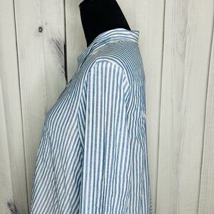 Habitat Clothes To Live In Button Up Blouse Crinkle Blue White Striped Size XS