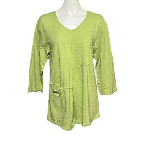Habitat Clothes To Live In Size Large Tunic Top V-Neck T-Shirt Green Knit Pocket