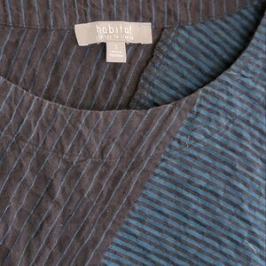 Habitat Clothes To Live In | Textured Teal & Black Striped Lagenlook Top Small