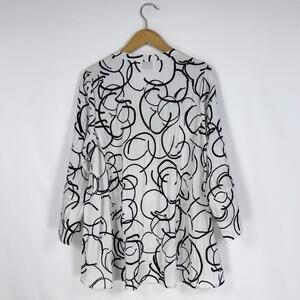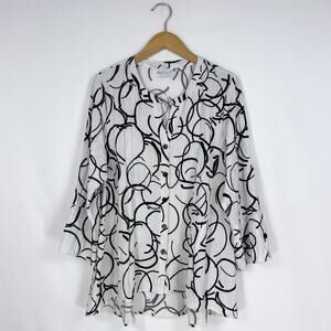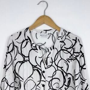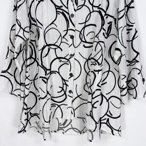 Habitat Clothes To Live In Women's Artsy Button Down Top Large White Black