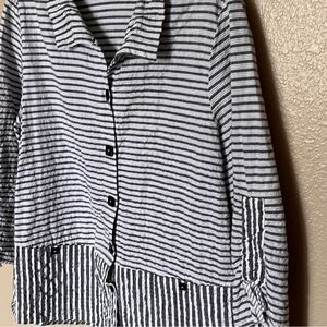 Habitat Clothes to Live In Gray Striped Ruched Sleeve Button Jacket Size Small