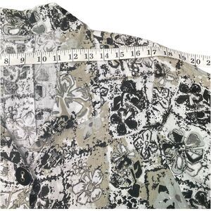 Excellent pre-owned condition. Black, Grey, White, sage green floral pattern.