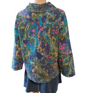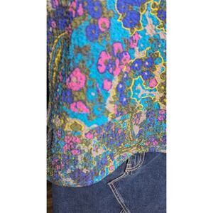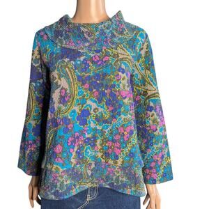Habitat Clothes to Live In Size S Crinkle Crepe Drape Collar Pullover Top Floral