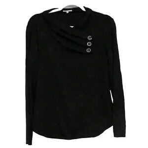Habitat Clothes to Live In Sweater Size Medium Black Cowl Neck Stretch Buttons
