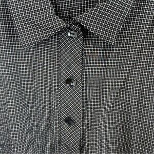 Habitat Clothes to Live In Womens Top L Gray Black Plaid Gingham Buttons