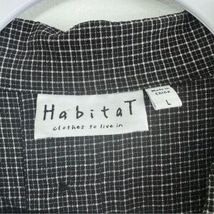 Habitat Clothes to Live In Womens Top L Gray Black Plaid Gingham Buttons