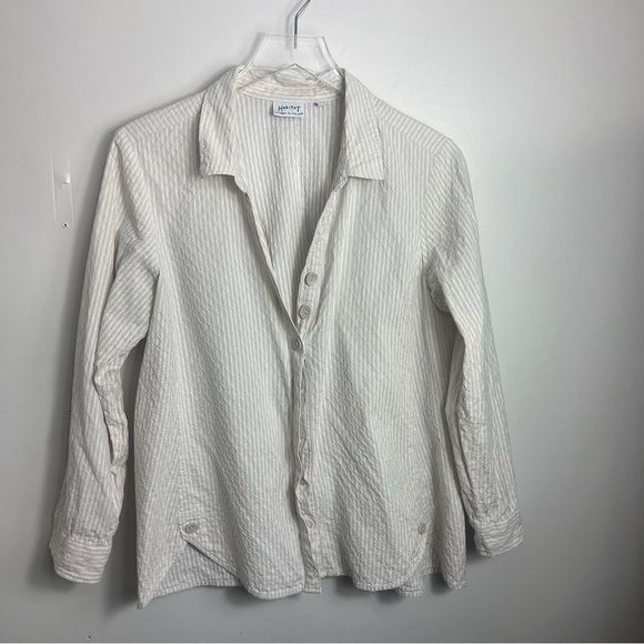 Habitat Clothes to Live In cotton puckered Cream White button up long sleeve M