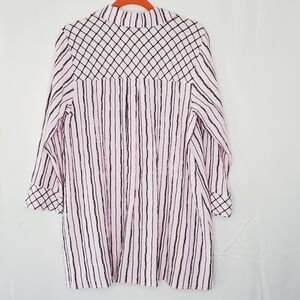 Habitat Contrast Stripe Tunic Size M Hi-low Hem Button Front Pink Shirt.