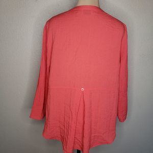 Stylish coral tunic with button-front design. Long sleeves and relaxed fit. Perfect for casual wear.