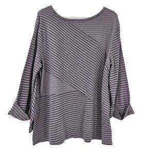 Habitat High-Low Striped Boxy Lagenlook Top Gray Oversized 3/4 Sleeve Side Slit Relaxed Fit Women’s