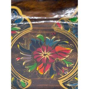 This vintage wooden serving tray is handmade in England by Habitat International, measuring 17" x 11.25". Perfect for entertaining or as a decorative piece, it combines functionality with timeless design.