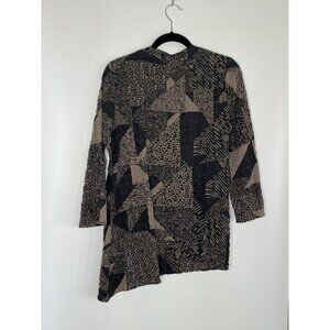 Habitat Lagenlook Black Brown Button Front Long Sleeve Tunic Size Small