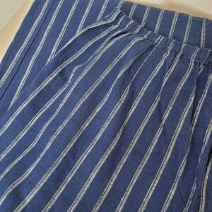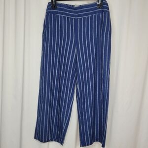 Habitat Linen Blend Blue White Striped Wide Leg Cropped Pull-On Pants - Size M
