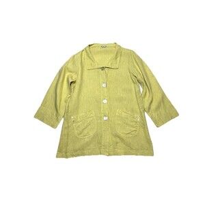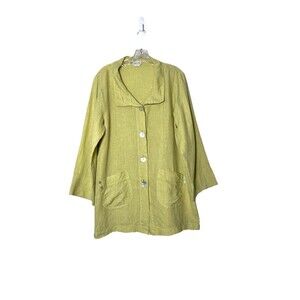 Habitat Linen Button Front Blazer Jacket Chartreuse Pockets Women Medium