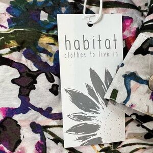 Habitat Multi-Watercolor Floral Button Up Bell Sleeve Tunic Blouse Top Large Collared NEW