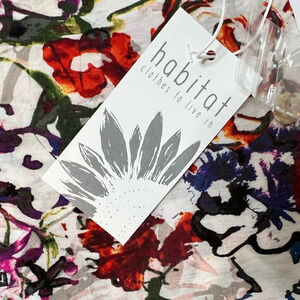 Habitat Multi-Watercolor Floral Button Up Bell Sleeve Tunic Blouse Top Small NEW
