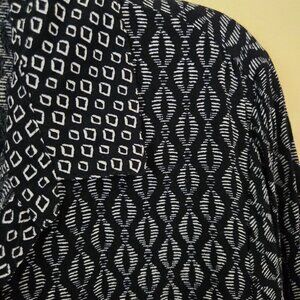 Habitat Navy Eyecat Lagonlook High Low Button Front Blouse Size L