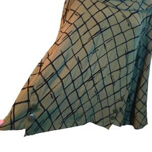 Super cute boxy Olive green with black geometric stripes top. Bateau neck, long bell sleeves, asymmetrical hem , 2 buttons on each side in excellent like new condition size XXL measures 27" pit to pit 25"-26" hem