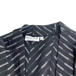 Habitat Open Front Cardigan in Black and White Stripe Cover Me Jacket. Size medium. ¾ sleeves with button accent. Side seam slits. Lagenlook. Art to wear. Excellent used condition.