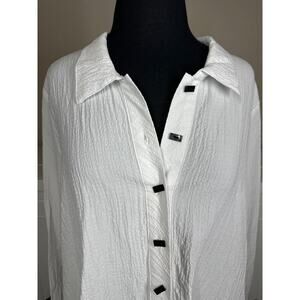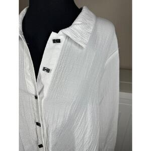 Habitat Pucker Weave White Long Sleeve Loose Fit Blouse Top Toggle Buttons Sz M