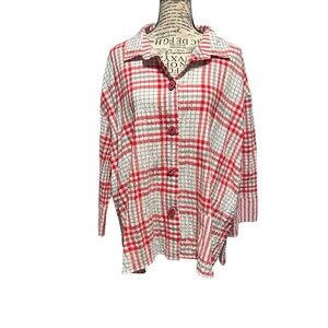 Habitat Red Plaid Textured Button Down Shirt Top Womens Large Outdoors Retro