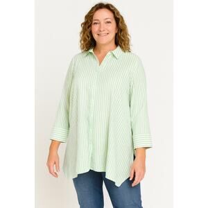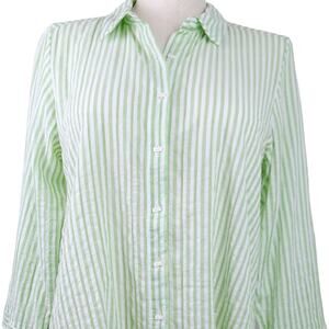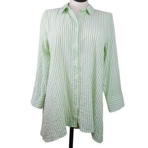Habitat SZ M Cotton Blend Green/White Striped Button Front Lightweight Tunic