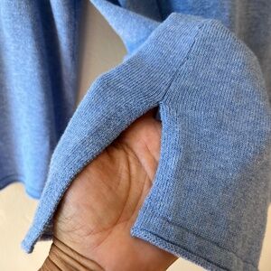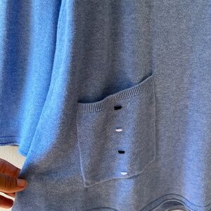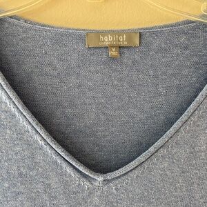 Habitat Sz M Stretch Blue Front Pocket Cotton Swing Tunic Sweater Blouse V Neck