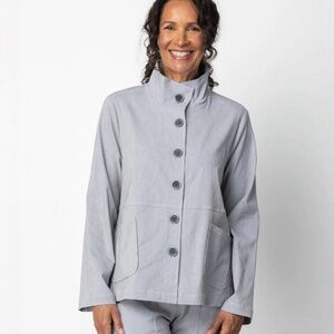 Habitat Sz S Oversized Hand Pockets Stretch Striped Wash Blue White Jacket