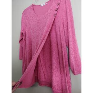 Habitat Tunic Sweater Size Large Pink Textured Floral 3/4 Sleeve Button Detail
