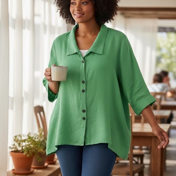 Habitat Tunic Top Green 100% Linen Preshrunk USA XL Minimalist Casual Coastal