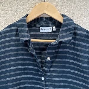Habitat Tunic Top Women's Size S Linen Navy Striped Lagenlook Minimalist Boho