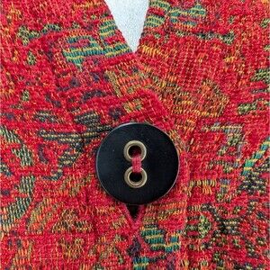 Habitat Vintage Boho Artsy Red Green Button Texture Tapestry Jacket Blazer Large